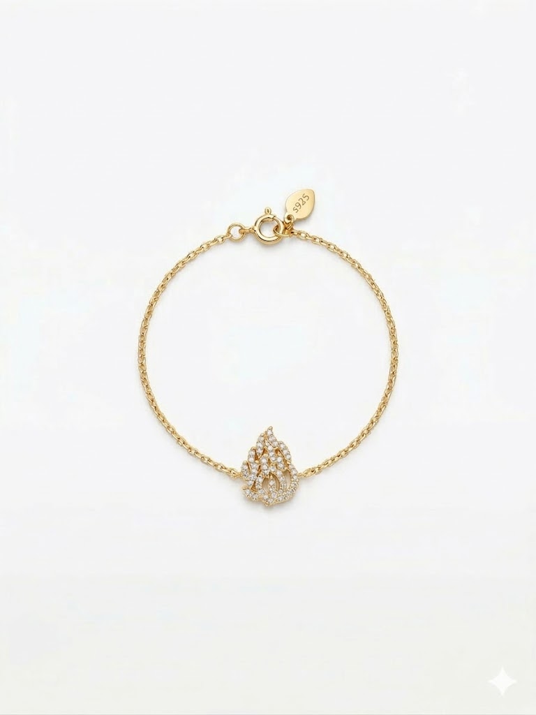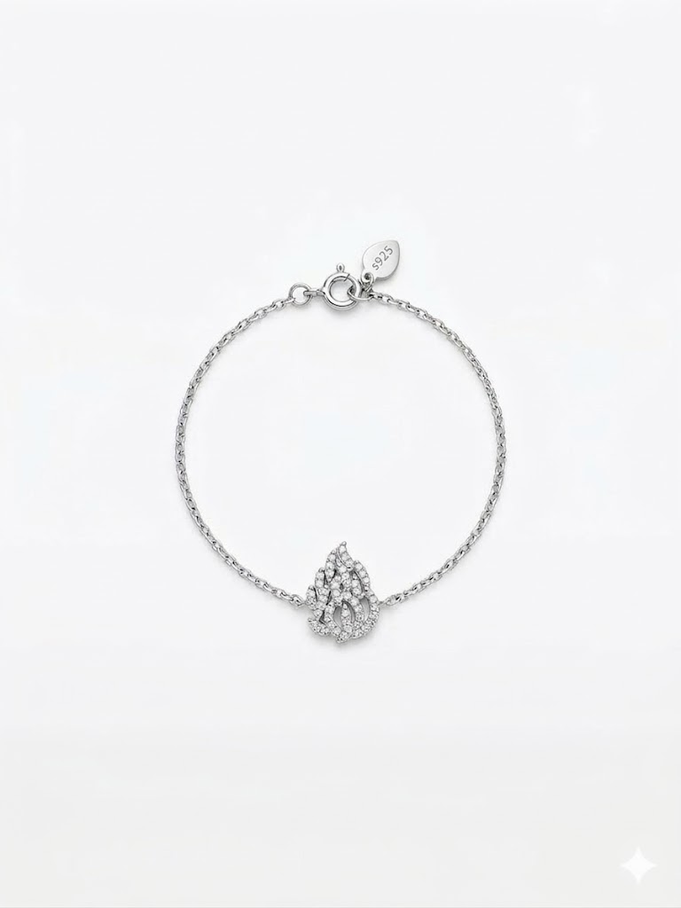 צמיד עדין עשוי שרשרת חוליות מכסף טהור 925, המגיע במידה אחת סטנדרט. במרכזו סמל הלהבה האייקוני "האש שלי" של חסידות ברסלב, המשובץ באבני זירקוניה 5A מנצנצות – שילוב מושלם בין חיבור עמוק ליוקרה מעודנת.